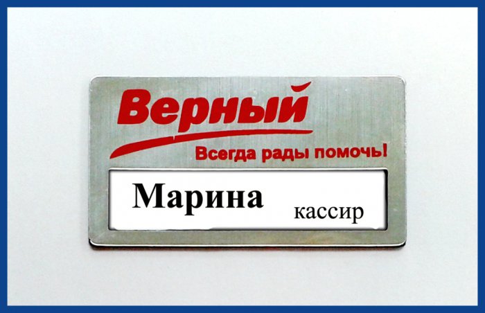 Материал двухслойный пластик, с окошком для вставки. Крепление - булавка, магнит.